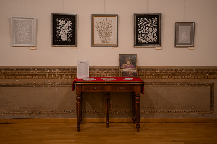 Экспозиция объединила иконопись, лаковую миниатюру, декоративно-прикладное искусство и знаменитую мстёрскую вышивку гладью – всё из частных коллекций коренных жительниц Мстёры.
